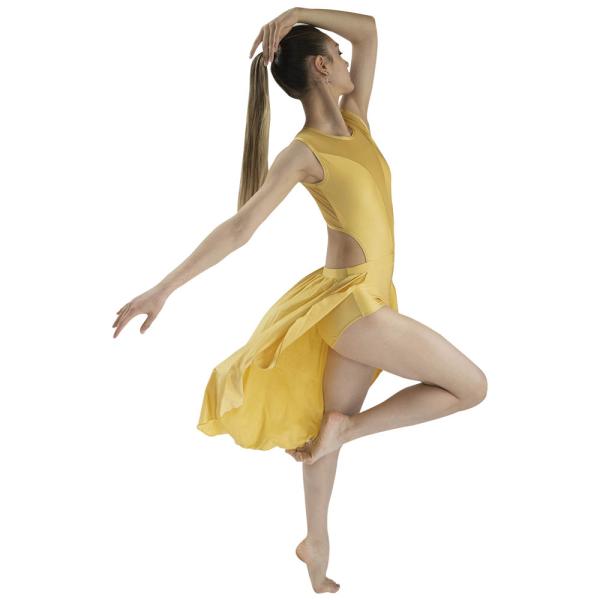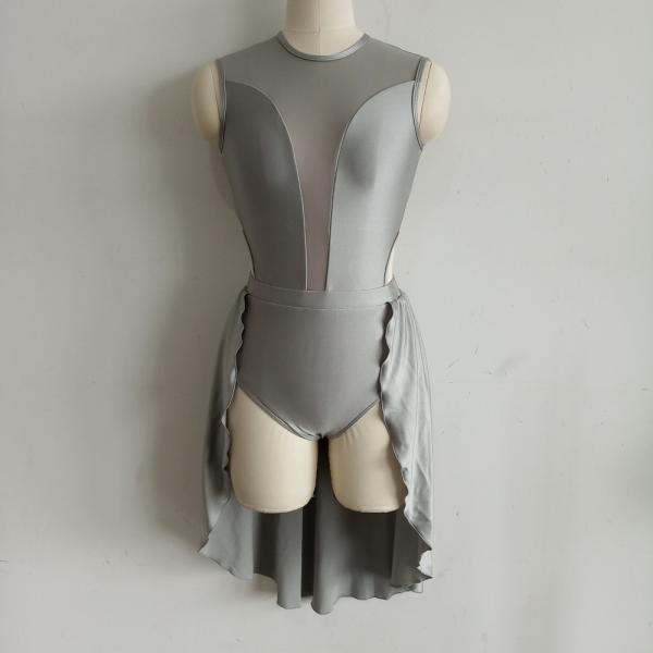 Retail Wholesale Nylon/Lycra Mesh Modern Dance Skirts Long sleeved dance dress with flowing skirt hem 800198-5